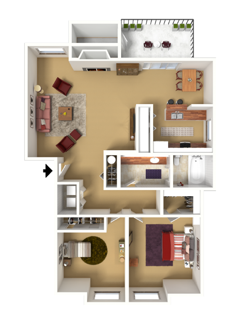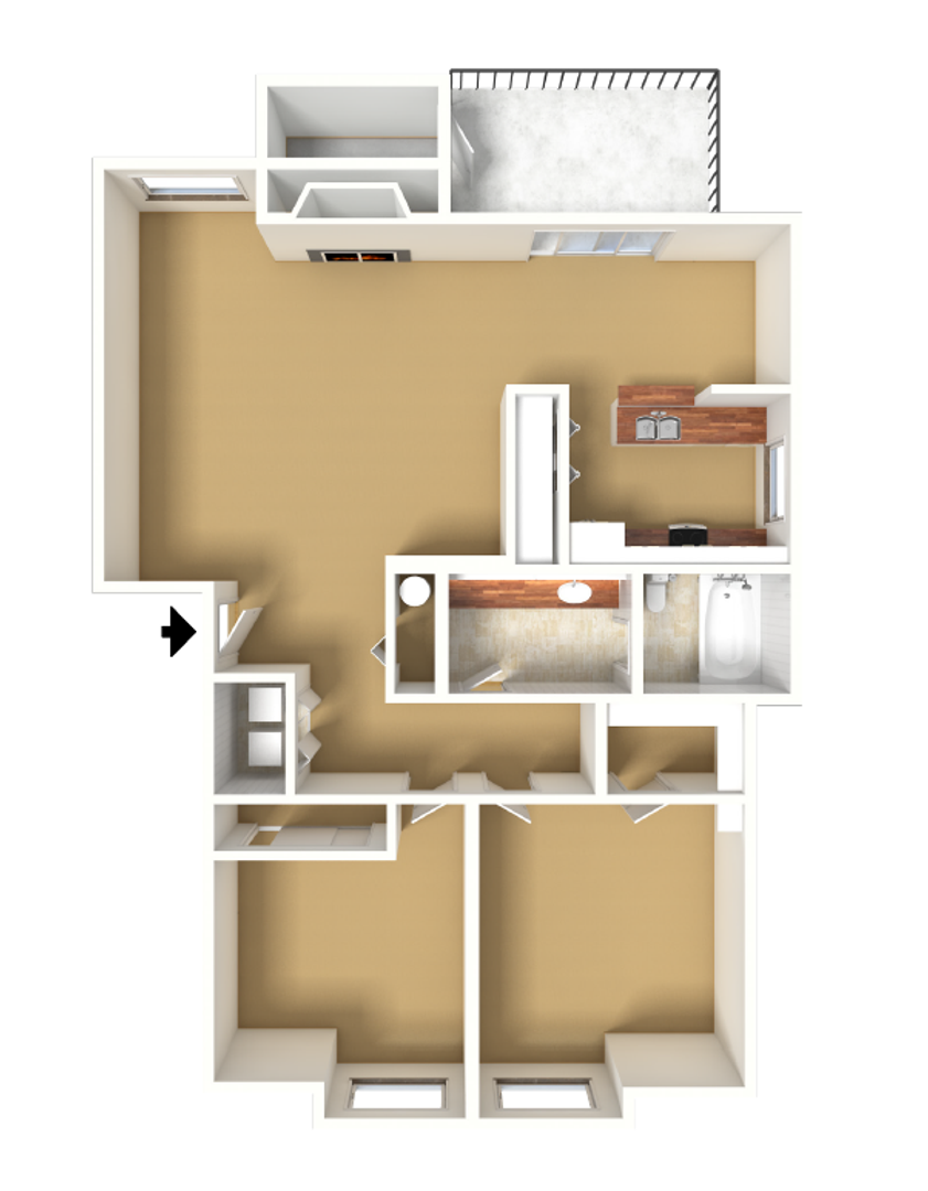 Come join our community at Breckenridge with great rental rates on this 2 bedroom apartment. This 2 bedroom, 1 bath design comes with a 5' bathroom vanity and a 3' by 5' mirror. Enjoy barbequing? The Chelsea has an 11' by 8' private patio and attached 4' by 6' storage unit. This apartment is ideal for any resident and is for rent now! The Chelsea has a roomy living room approximately 17' by 14' making it one of the largest compared to competitors! This apartment has over head lighting in all rooms and electrical outlets on all major walls for ultimate convenience. Stop by today and see why this is one of our number one sellers at Breckenridge.